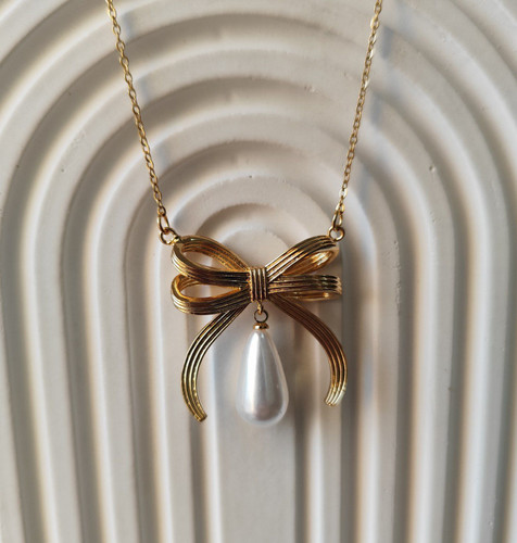 گردنبند پاپیون_مروارید طلایی